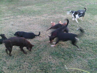 Teagan, being the smart little dog she is, quickly settled in with the other dogs. We feed her, pet her, play with her just like any of the other dogs, but Teagan continues to be extremely needy. It's like she just can't get enough, which makes her a huge pest, especially since she is very persistent and will climb all over you to be petted. Oh, did I mention Teagan is extremely strong for her size?